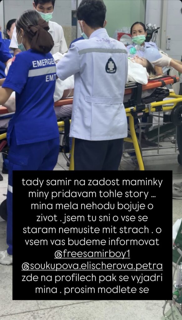 „Míně selhalo srdce čtyřikrát. Čtyřikrát ji nahodili, bohužel je ve fakt špatném stavu. Dělám první poslední, ale už nejde víc dělat,“ vzkazoval Samir z nemocnice, zatímco se snažil zajistit převoz do modernějšího zařízení v Bangkoku.